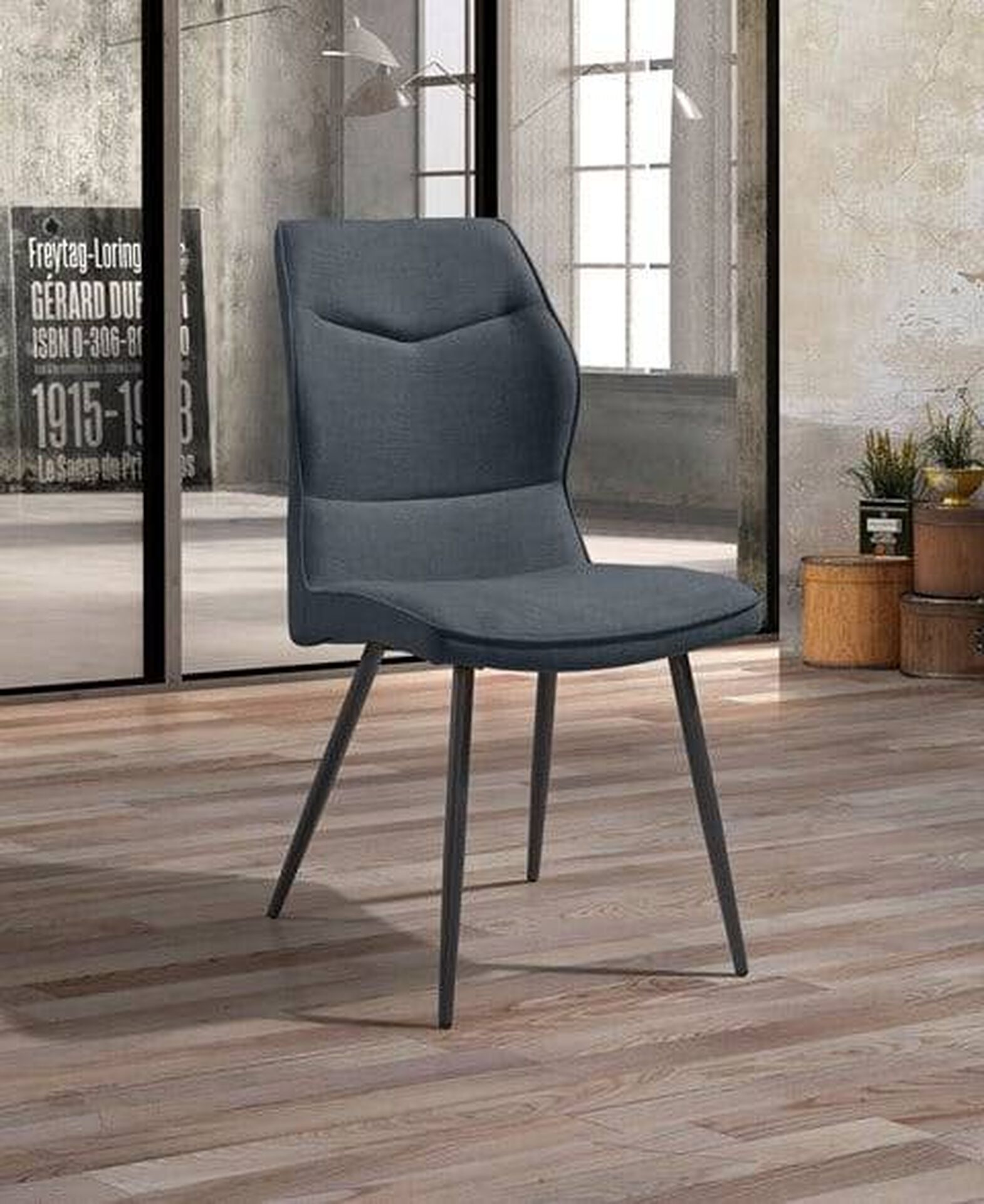 L’assise et le dossier sont en tissu, le piétement est en métal gris anthracite finition poudre. 4 coloris sont disponibles.