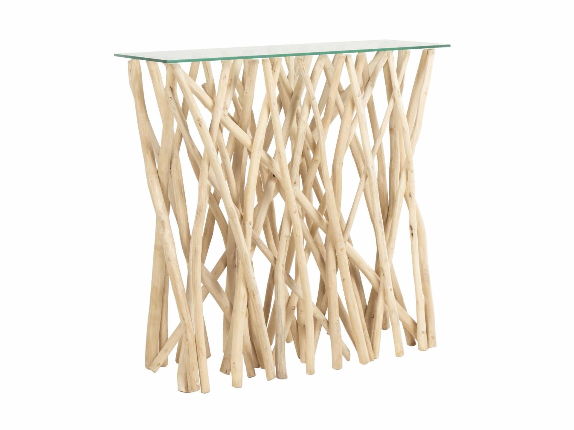Votre magasin USIMEUBLE vous propose à la vente cette console en pied teck brut et plateau verre.