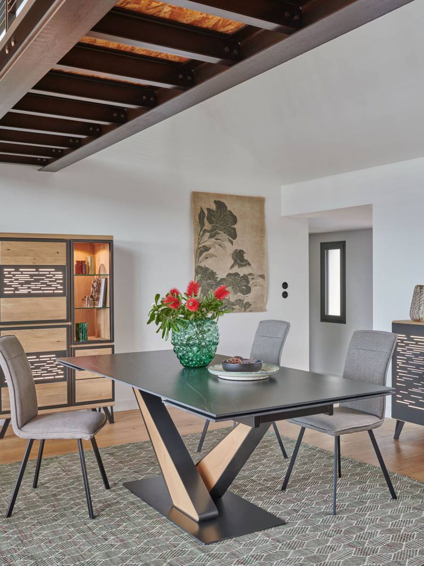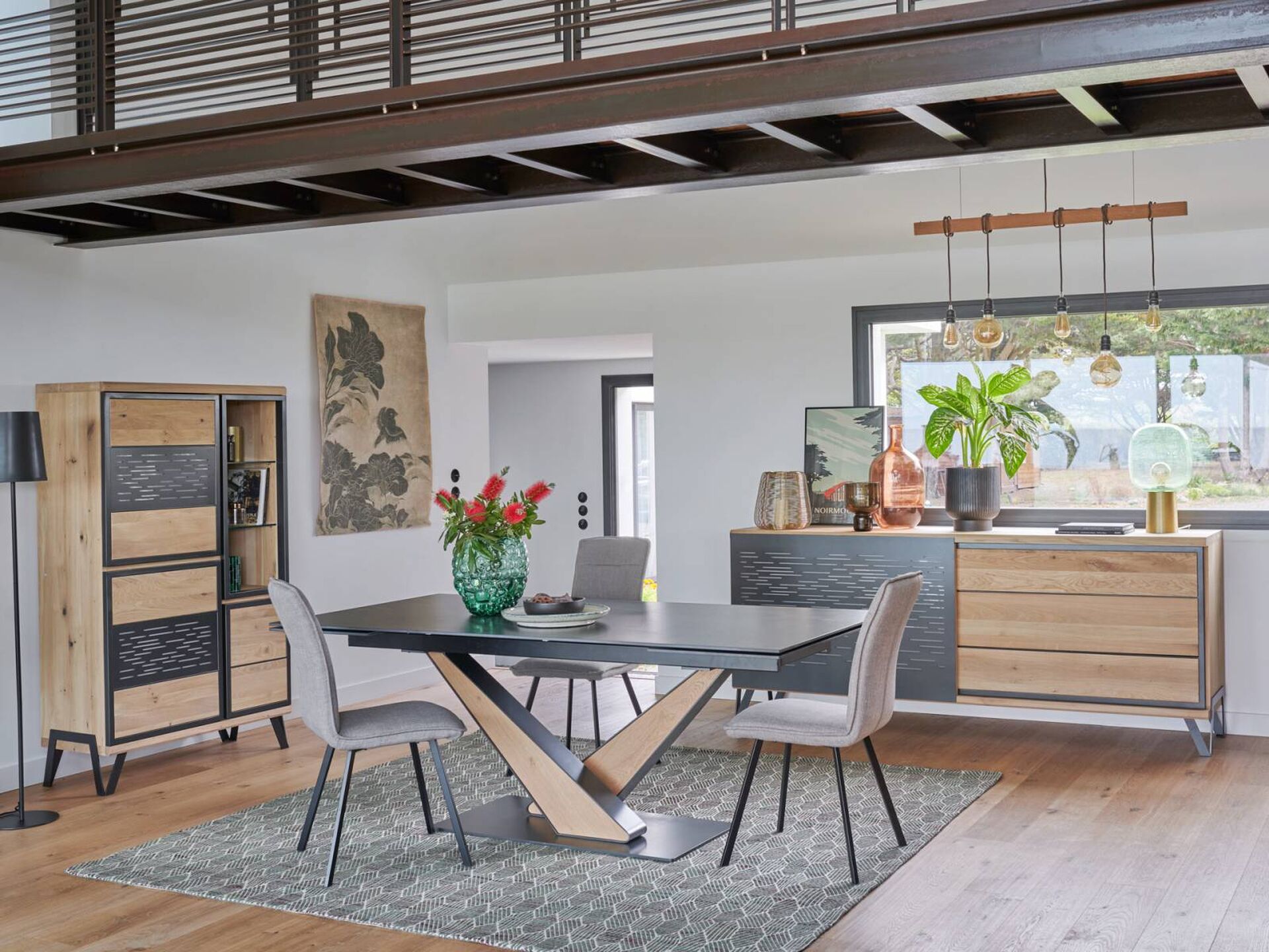 . Votre magasin USIMEUBLE vous propose à la vente cette salle à manger EDGE de fabrication Française. Le mariage du bois et du métal avec les éclairages apporteront un côté chaleureux à votre intérieur.