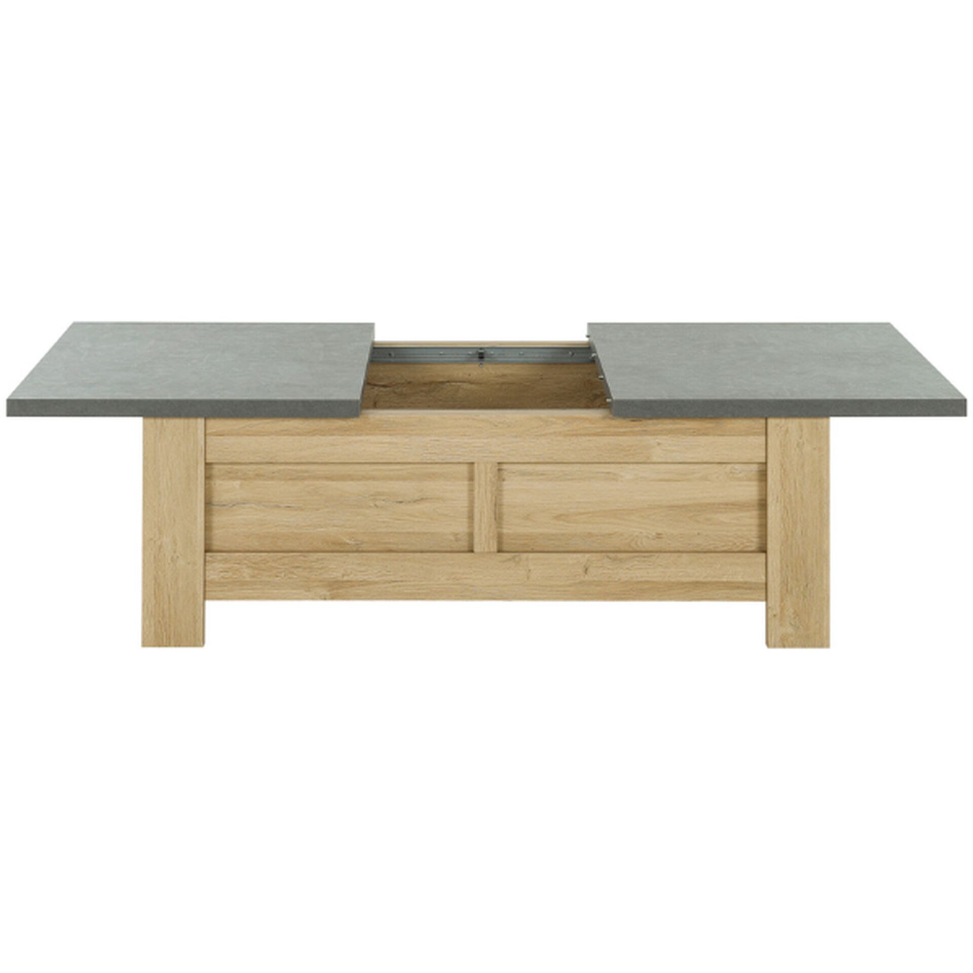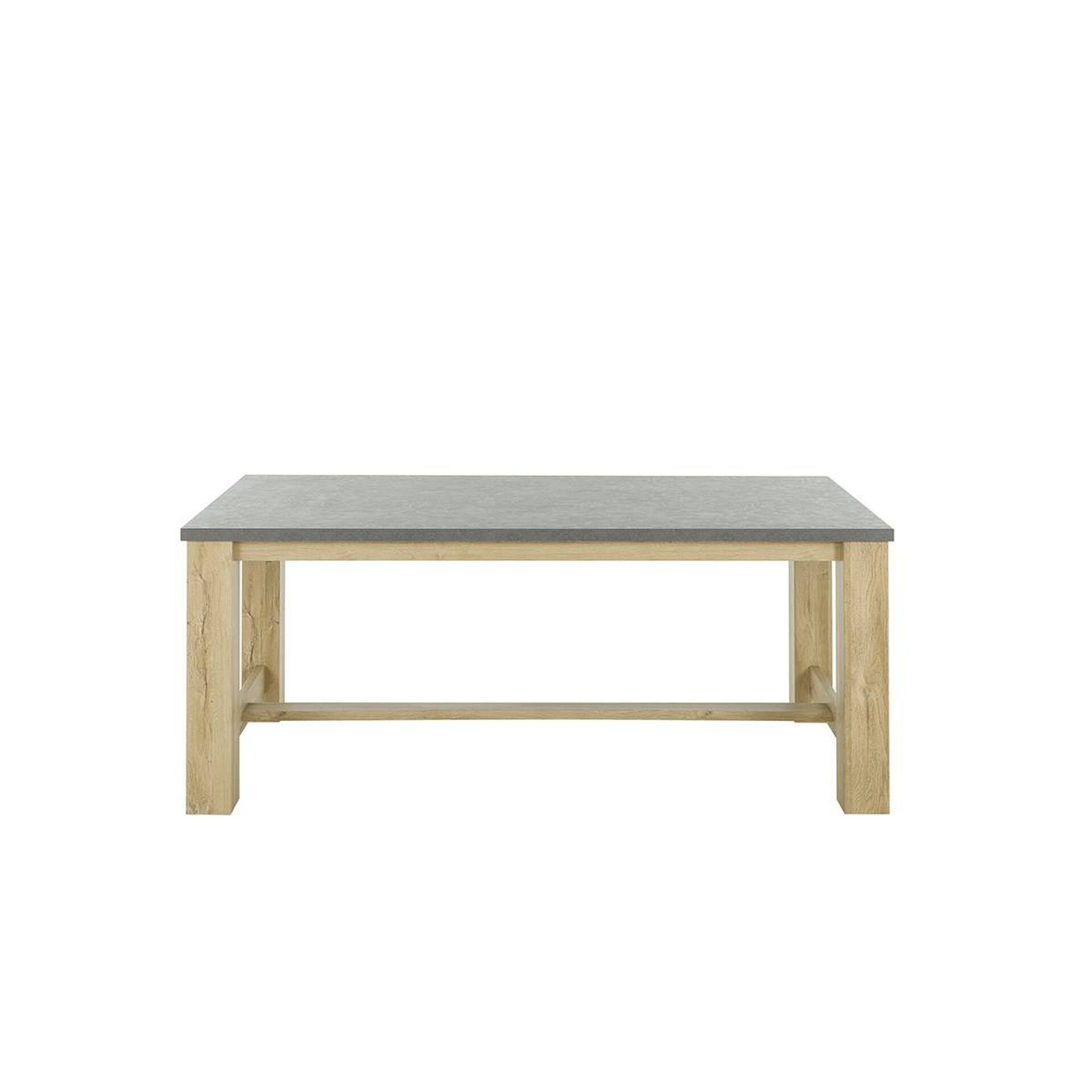 Votre magasin USIMEUBLE vous propose à la vente cette salle à manger BROCELIANDE de style industriel en décor béton et chêne clair. Ces meubles sont fabriqués en panneaux de particules mélaminée et ont un aspect robuste.