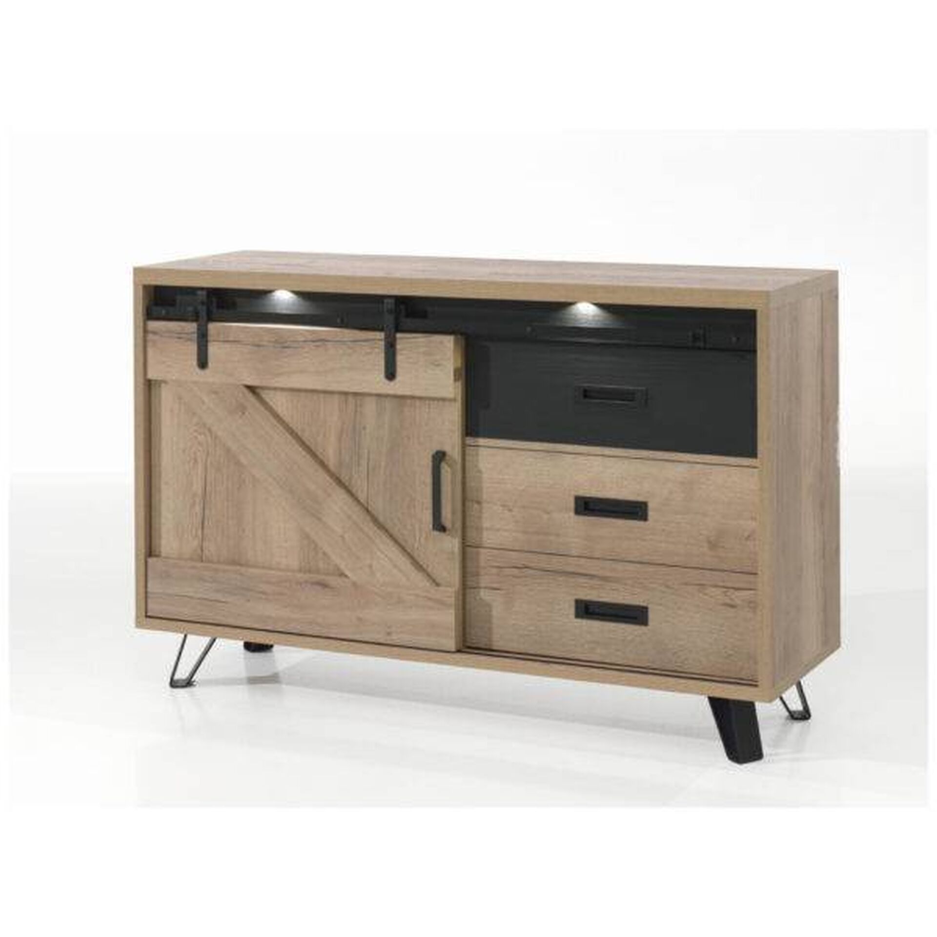 Votre magasin USIMEUBLE vous propose à la vente cette salle à manger CUSTER. En imitation chêne nature avec des finitions métalliques, cette salle à mangerCUSTERcontemporaine se mariera parfaitement avec votre intérieur. En panneaux de particules recouvert avec un mélamine de haute qualité, les pieds sont en métal poudre noir mat. Cette collection est livrée préassemblée mais est démontable. Plusieurs meubles sont proposés, dont vitrine et bahut en différentes dimensions, meuble TV. Pour découvrir cette salle à manger CUSTER, rendez-vous à USIMEUBLE COLLEVILLE, situé à 10 minutes de Fécamp.