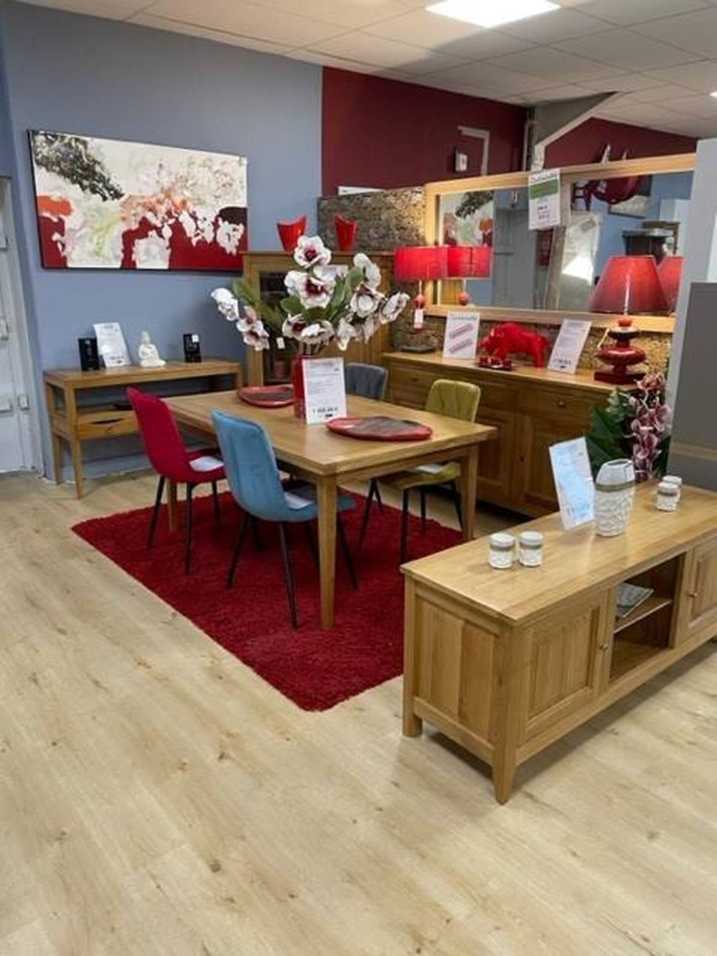 Votre magasin USIMEUBLE vous propose à la vente cette salle à manger en chêne massif de teinte naturel qui s'associe parfaitement avec l'ensemble de votre intérieur. Cette salle à manger est de fabrication française avec du chêne de France massif. Diverses teintes sont proposées, aussi bien unies ou en bicolore. Pour découvrir cette salle à manger en chêne de France massif, rendez-vous à USIMEUBLE COLLEVILLE, situé à 10 minutes de Fécamp.