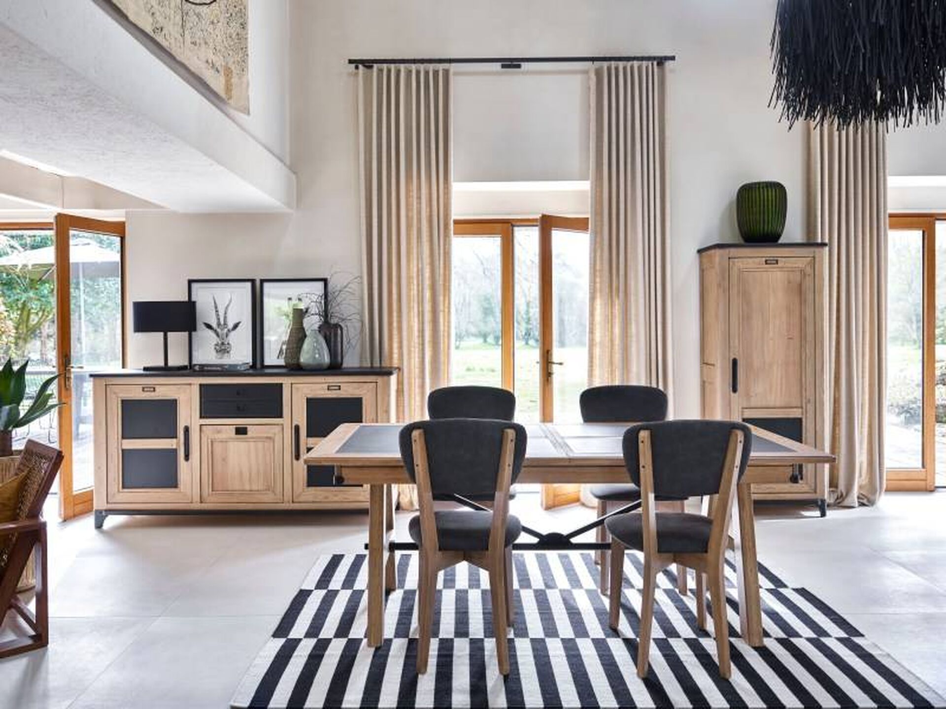 Cette salle à manger de fabrication française artisanale est conçue avec cette matière noble qu’est le bois massif.