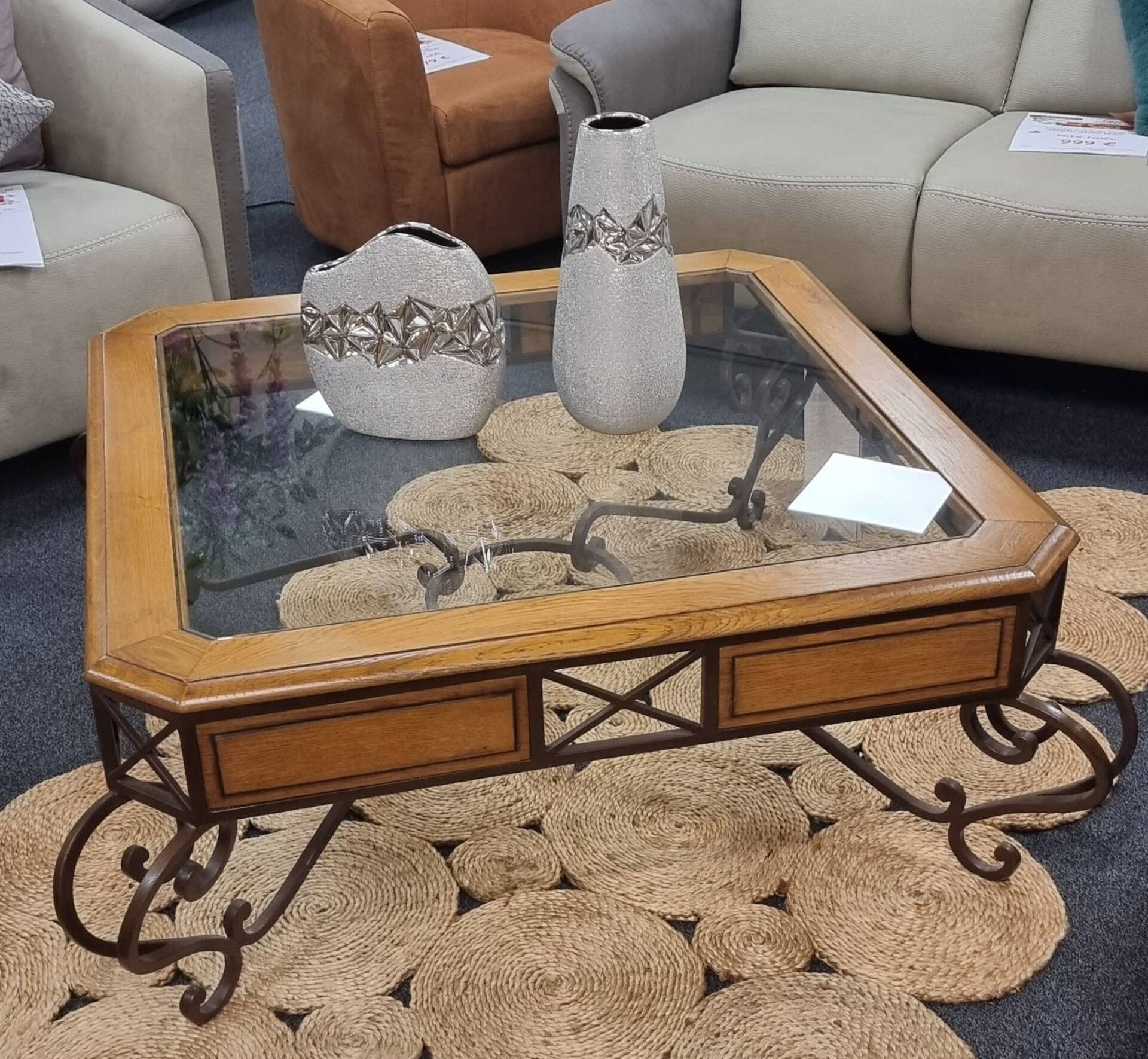 Notre équipe vous propose à la vente cette table basse carrée en chêne massif. Table basse carrée en chêne massif, plateau verre. Pour découvrir cette table basse carrée, rendez vous dans notre magasin USIMEUBLE, situé à 10 minutes de Fécamp.
